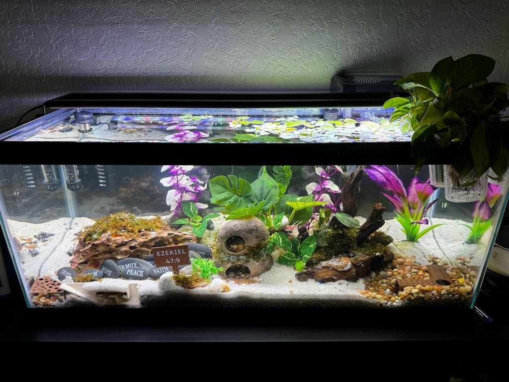 I love that it glows in the dark and holds multiple plants in my tank